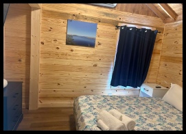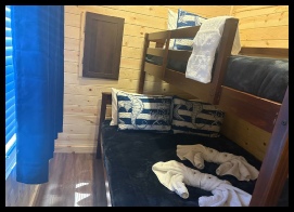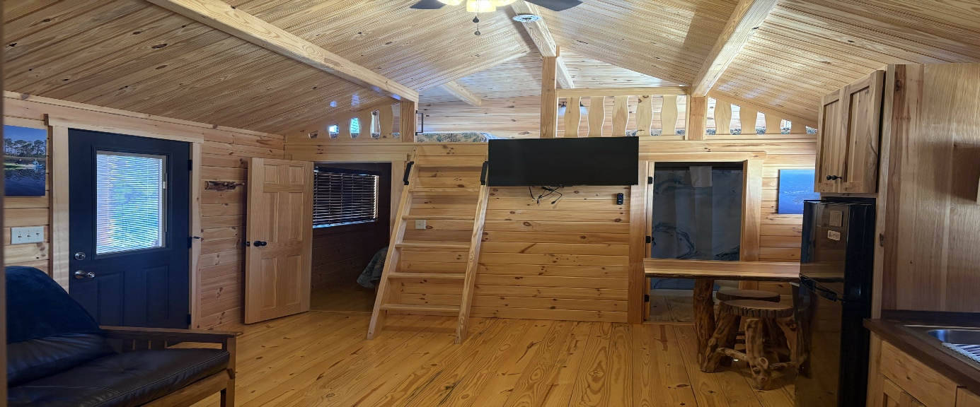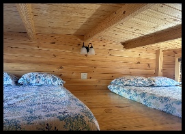 River club Cabin 8 sleeps 6 people has 1 bedroom 1 bath , 1 queen bed , queen pull out sofa , and 2 twin beds in loft