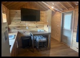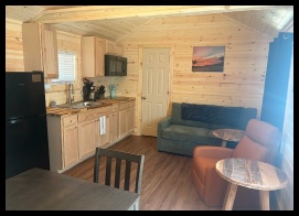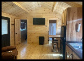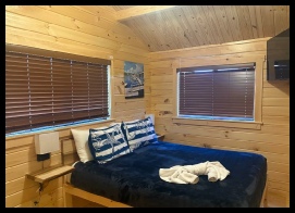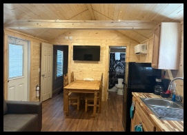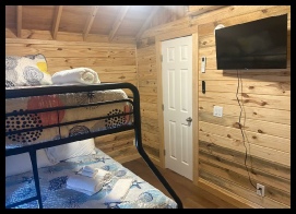 Lancaster Cabin 16 and 17 sleeps 6 people it is a 2 bedroom 1 bath with 1 queen room, 1 full room , and queen pull out sofa